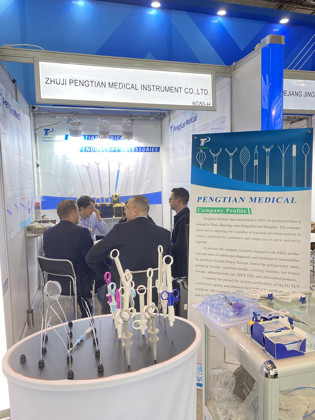 鵬天醫(yī)療一直致力于消化內(nèi)鏡行業(yè)的發(fā)展。借助本次大會,展示了活檢鉗、止血夾、注射針、異物鉗等一系列胃腸鏡產(chǎn)品。通過這次亮相,吸引了眾多國外代理商和朋友前來咨詢、了解鵬天醫(yī)療的產(chǎn)品。